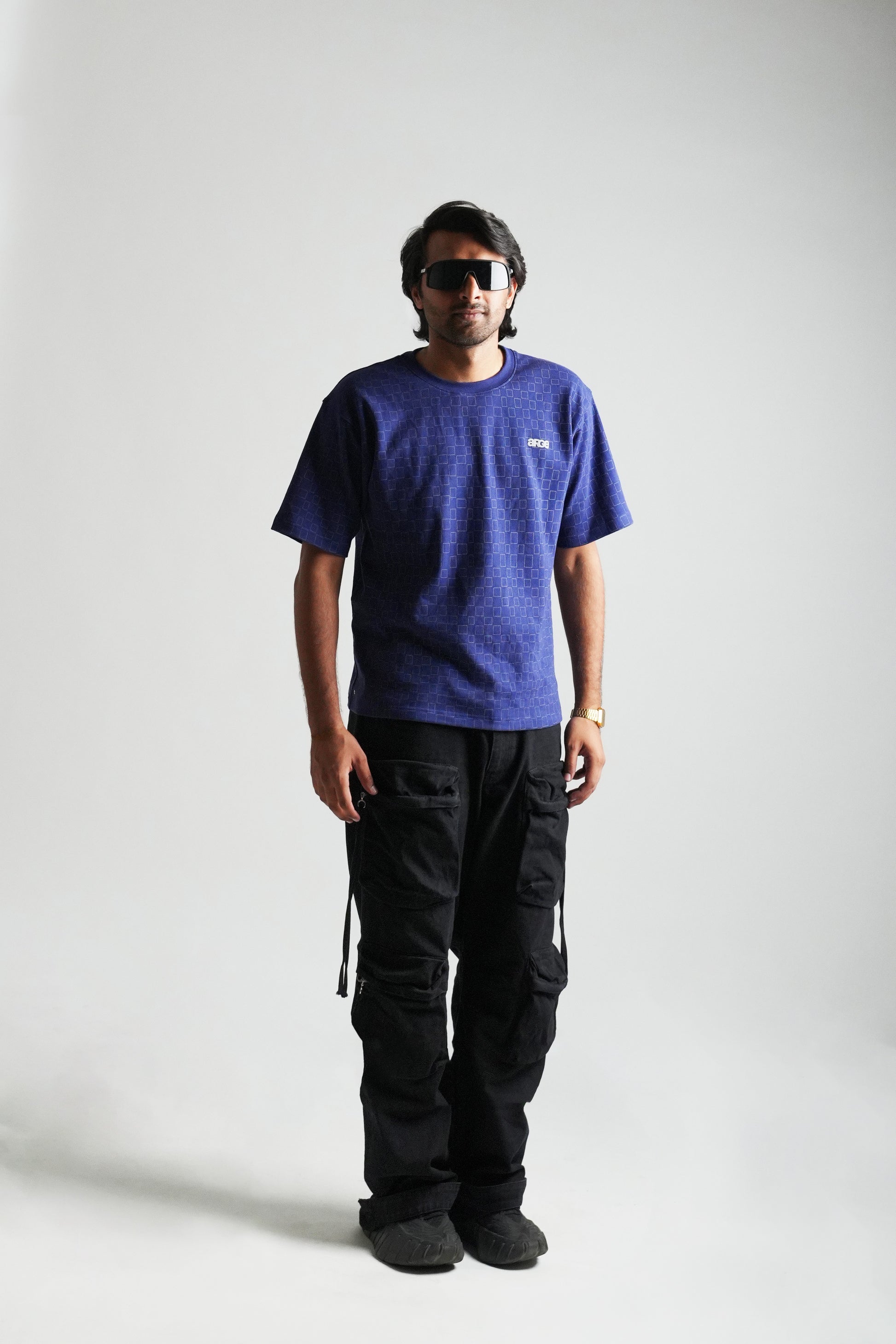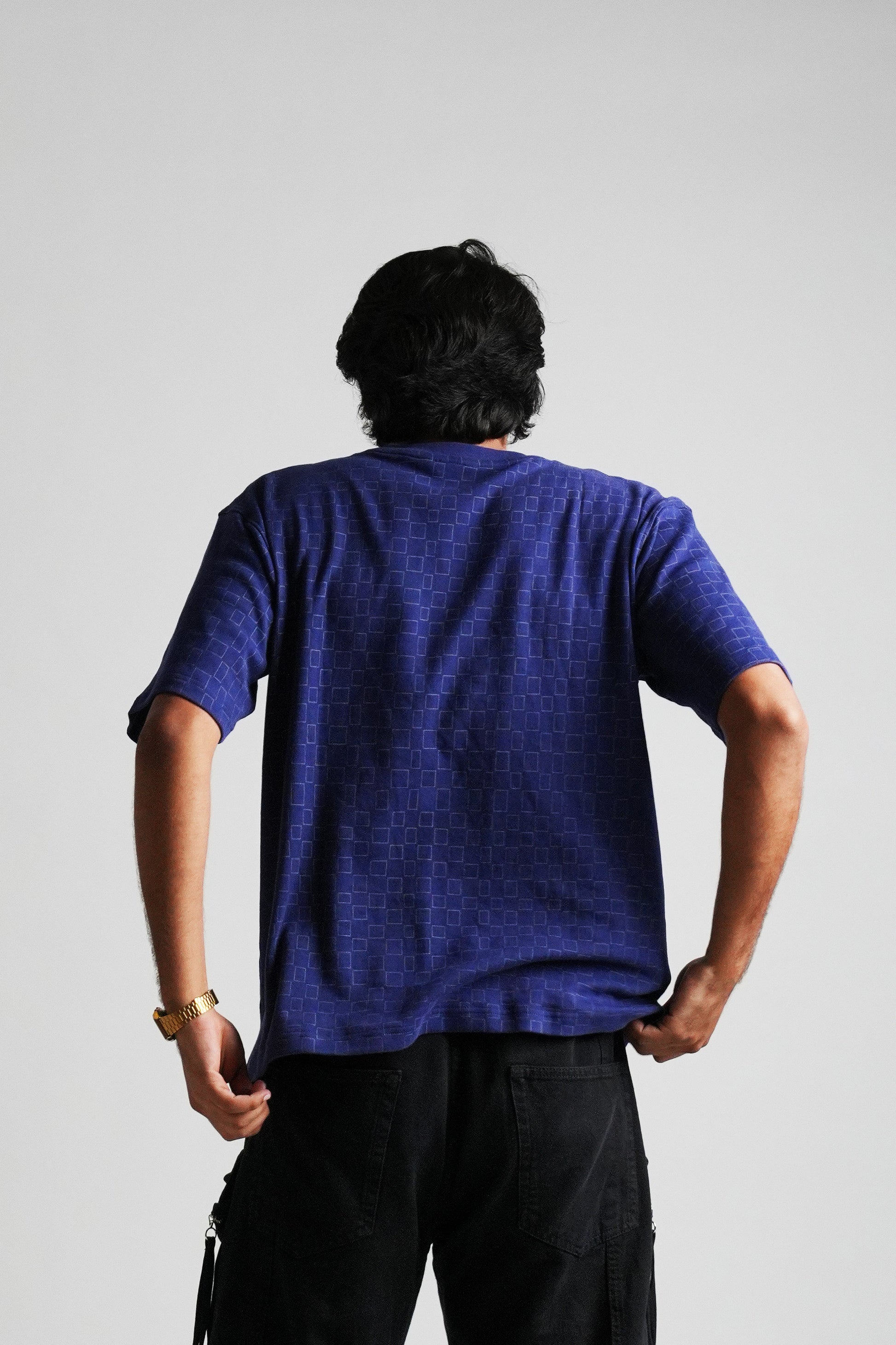 Cut from heavyweight cotton in our striking Deep Sea Navy, this tee combines a bold hue with a minimalist geometric grid print for understated impact. Designed for comfort and effortless wear, it brings a fresh energy to your everyday rotation.